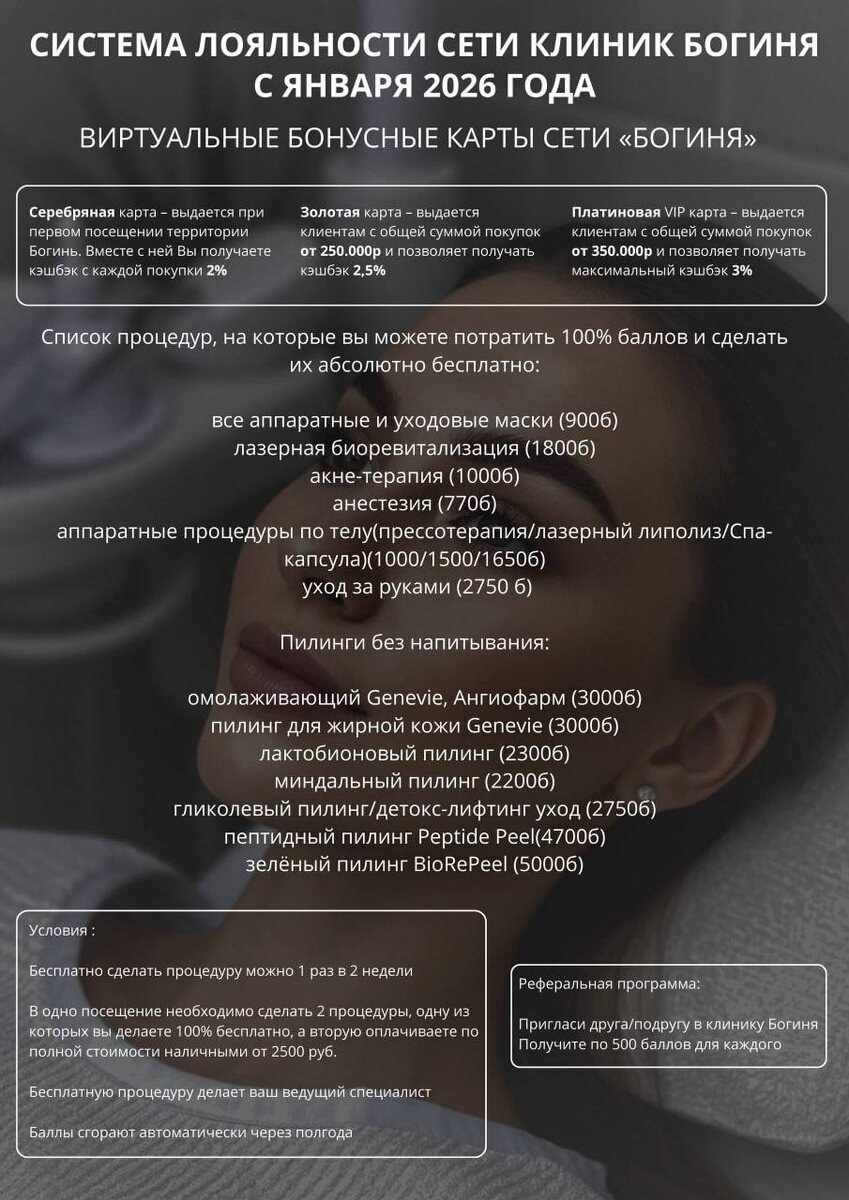 Система лояльности в клинике Богиня ✨ (изменения с января 2026 года)