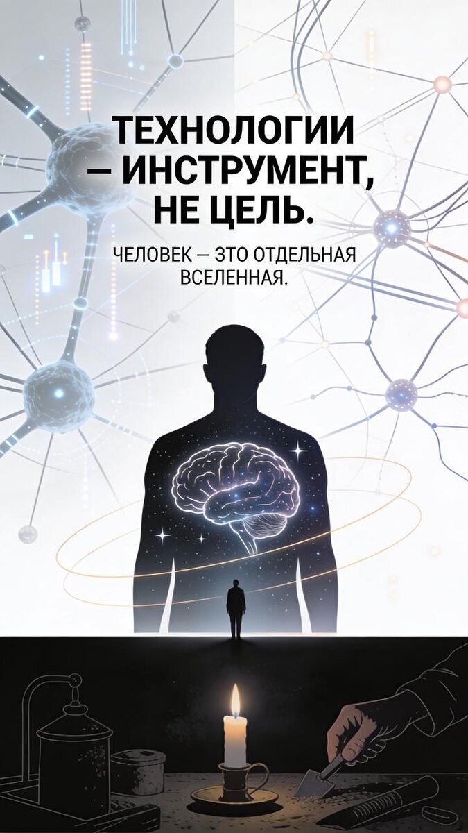 …………… А вот ещё чуть больше ста лет назад было всё иначе… И всё же, технологический путь не представляется идеальным. Наоборот, представляется неидеальным для развития и самопознания человека, его духовности. Уводит от Истины его предназначения. Хотя, очевидно, даёт человечеству, для самопознания, возможность свободного времени от быта, социальной рутины. Естественно, что отклонения и перегибы - извечные спутники прогресса(и не только его). И нужно рассматривать технопуть, как инструмент. И человечеству нужно воспользоваться технологичностью для саморазвития и самопознания. Каждый человек- как отдельная вселенная. Это где-то странно и страшно, но это так(см. нейронные связи мозга). Но не каждый может стать настоящей вселенной. Во-первых, - это реально страшно. Во-вторых, для этого нужно познать себя бесконечно, сохраняя равновесие. Но нас постоянно дисбалансируют, отвлекают от самого важного. До него - рукой подать. Осталось лишь её протянуть, в нужном направлении, и прикоснуться к Ист
