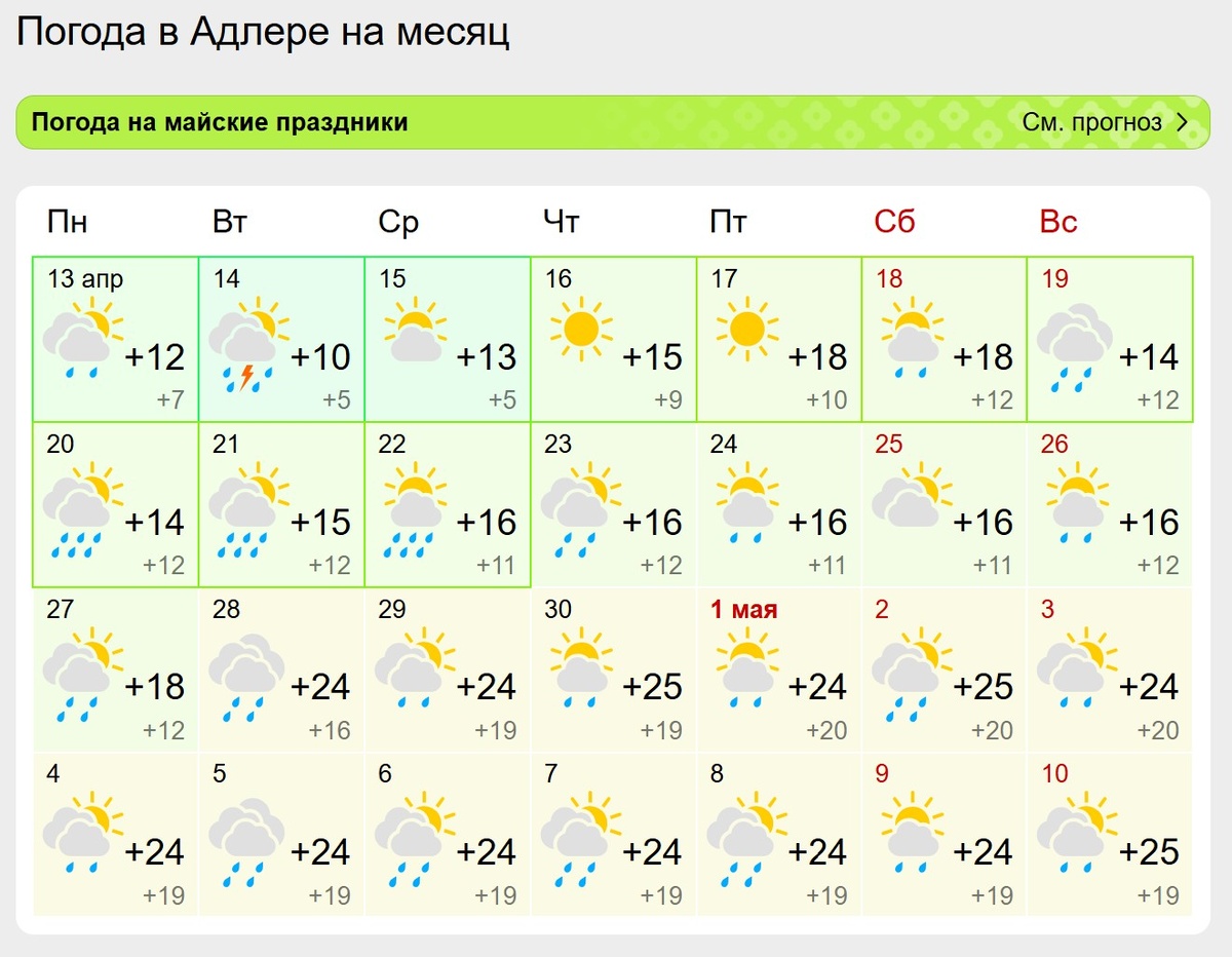 Адлер, #проновости: летняя погода на майские праздники * аренда жилья: кто в лес, кто по дрова * золотые пляжи Анапы.