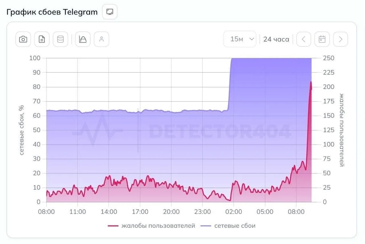 💬Жалобы на сетевые сбои выросли до 100% — в другие дни было 64%. Многие пользователи не могут отправить сообщения, открыть фото или видео. У некоторых и вовсе не открывается приложение. Поэтому подписывайтесь на наш канал в max, чтобы оставаться с нами на связи🫡 https://max.ru/join/xW5twTXciPLQnJHvhnLsWfWKbDgXa-YUZ75FRBu25I0