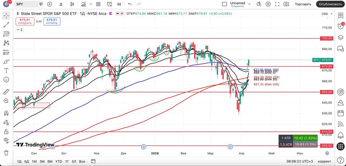Также не исключаю красные дни или консолидацию, учитывая те же контртрендовые сигналы: $S1FD у 80%, $VIX на 200 EMA D, $MAGS над 200 EMA D и индексы сильно отдалились от быстрых скользящих. Пятница, закрытие рынка — продолжаем активничать. #spy #технический_анализ #америка #трейдинг_сша #фондовый_рынок #обзор #вывод #qqq #vix #smh #mags #xlk #ixic