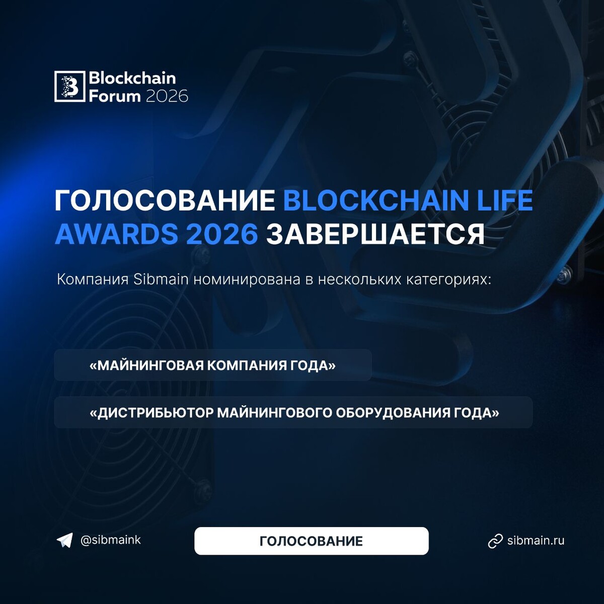 ➡️Заключительная неделя голосования премии Blockchain Life Awards 2026 подходит к концу, скоро будут определены лучшие компании майнинговой отрасли. Компания Sibmain номинирована в нескольких категориях: ✅«Майнинговая компания года»; ✅«Дистрибьютор майнингового оборудования года» Как проголосовать? ⏺Запустите мини-приложение для голосования; ⏺Найдите нужную номинацию; ⏺Выберите вариант за компанию Sibmain; ⏺Подтвердите выбор, нажав кнопку "Голосовать" 📍Спасибо за вашу поддержку