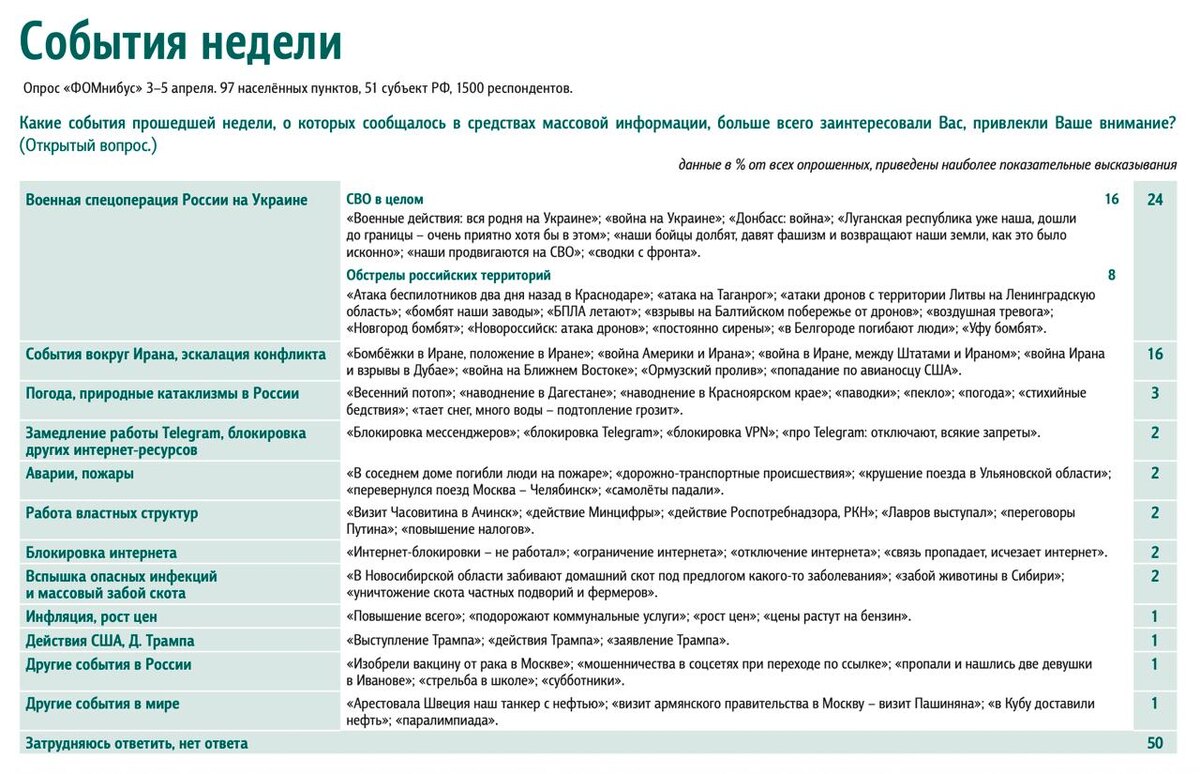 Результаты еженедельного опроса 3 – 5 апреля 2026 года.