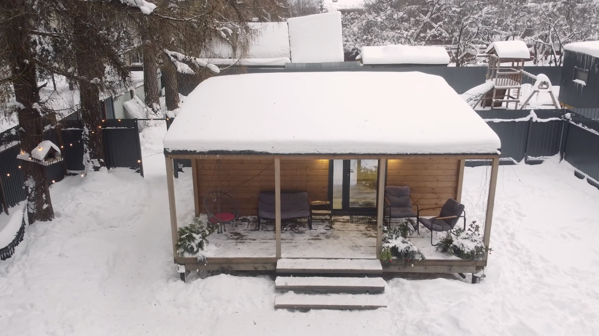 И «Скандинавия» 40, по их опыту, как раз оказалась таким вариантом. Дом компактный, но при этом позволяет разместиться комфортно. Он не требует отдельной большой стройки. Его можно быстро установить и начать использовать по назначению.
