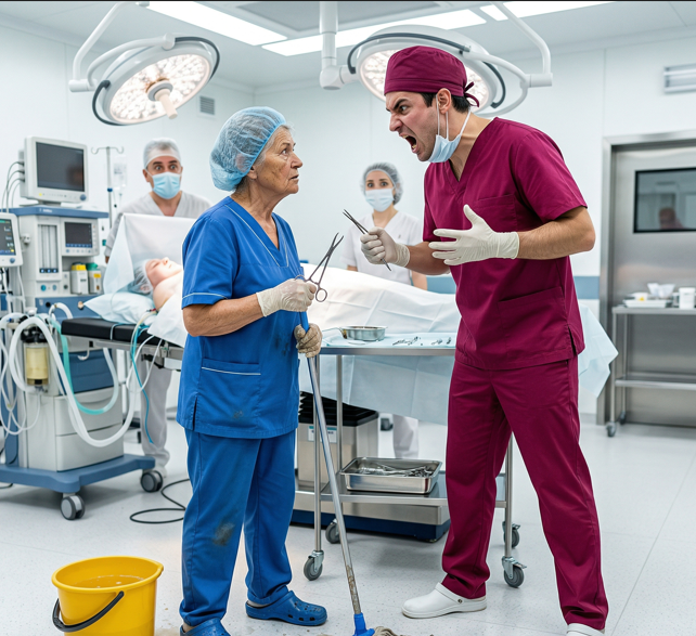 Затем он посмотрел на операционный стол. Возле него стояла уборщица в мешковатом костюме. На ее руках были надеты стерильные перчатки, в которых она все еще сжимала инструмент.