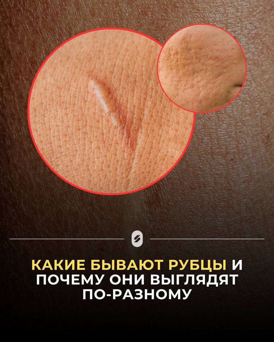 Любая рана заживает не как было, а с образованием рубца По сути, это замена нормальной кожи на соединительную ткань (коллаген) У кого-то остаётся почти незаметная линия, а у кого-то выраженный рубец Почему так? Разберёмся Основные виды рубцов👇🏻 1️⃣ Нормальный (нормотрофический) Идеальный вариант: 👉🏻 плоский 👉🏻 светлый 👉🏻 мягкий и эластичный 👉🏻 почти не выделяется на коже Это то, как организм правильно заживает 2️⃣ Атрофический Такой рубец как будто проваливается внутрь: ⬇️ ниже уровня кожи ⬇️ тонкий и мягкий Чаще всего ты видел его после акне или ветрянки 👉🏻 причина недостаток коллагена 3️⃣ Гипертрофический Обратная ситуация: ⬆️ выступает над кожей ⬆️ плотный, иногда красный Но важный момент: 👉🏻 он не выходит за пределы самой раны Возникает, когда организм перестарался и выработал слишком много коллагена 4️⃣ Келоидный Самый сложный вариант.ю 👉🏻 выходит за границы раны 👉🏻 плотный, бугристый 👉🏻 может зудеть или болеть 👉🏻 иногда продолжает расти