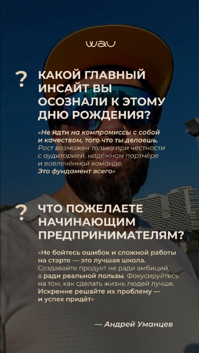 Это особенный день для всей команды Поздравляем! Желаем невероятных успехов! Задали несколько интересных вопросов основателю в честь его дня Делимся с вами 💛 Поздравить Андрея можно в комментариях, он все прочитает!✨