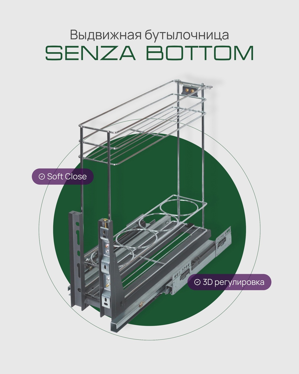 Удобная организация хранения на кухне начинается с продуманных решений. Бутылочница SENZA Bottom помогает эффективно использовать узкие модули и поддерживать порядок. ✨ Ключевые преимущества: 🔹 Плавное закрывание Soft Close Встроенный доводчик обеспечивает мягкое и бесшумное движение без резких ударов. 🔹 Полное выдвижение Обеспечивает максимальный доступ ко всему содержимому и удобство использования. 🔹 3D-регулировка фасада Позволяет точно настроить положение фасада по 3 направлениям. 🔹 Ролики стабилизации Обеспечивают устойчивость конструкции и плавную работу механизма. 🔹 Рациональное использование пространства Идеально подходит для узких баз — удобное хранение бутылок, специй и кухонных аксессуаров. Бутылочница SENZA Bottom — практичное решение для современных кухонь. 👉 Подробнее о товаре — на сайте SENZA: https://senzamf.ru/products/vydvizhnye-korziny/butylochnica-senza-bottom Данный товар доступен на маркетплейсе Озон: https://ozon.ru/t/IxMDWCO