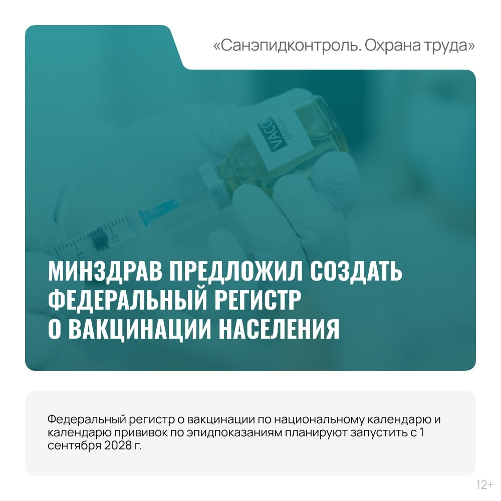 💡Федеральный регистр о вакцинации по национальному календарю и календарю прививок по эпидпоказаниям планируют запустить с 1 сентября 2028