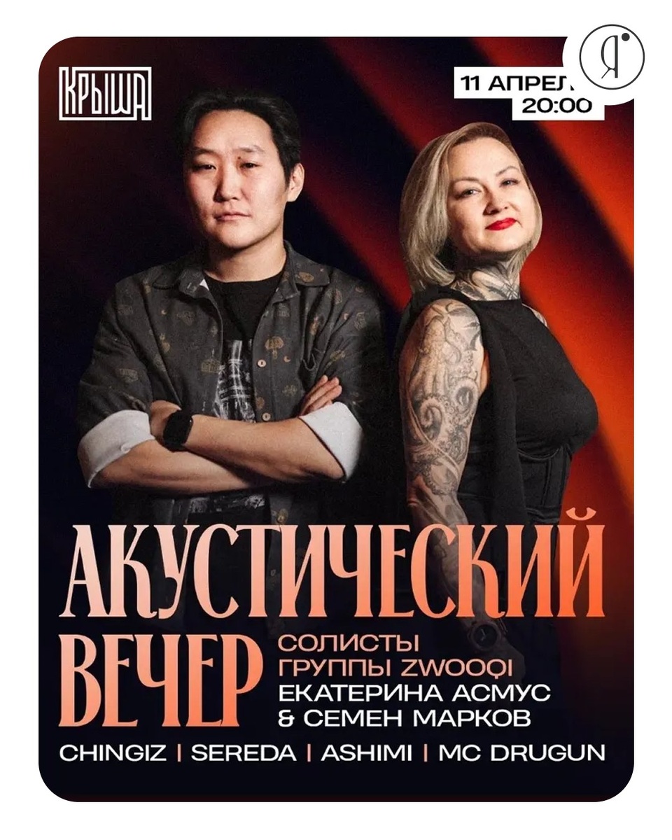 #Концерты Акустический вечер вместе с группой «ZWOQI» 11 апреля | 20:00 Крыша, Кальвица, 14/1а Бронирование столиков: +79247660106 Живая музыка от Оксаны Чупиковой и Евгения Мухина 11 апреля | 19:30 Kitchen, Губина, 39 Бронирование столиков: +79247660706 Ночной концерт от Андрея Храмова 12 апреля | 01:00 Крыша, Кальвица, 14/1а Бронирование столиков: +79247660106 Выступление группы «Перекрёсток» 11 апреля | 21:00 Aberdeen pub, Лермонтова, 92 Бронирование столиков: +79247650064 RECULT HARDCORE GIG 11 апреля | 19:30 The Guild, Ленина, 56/2 FC / DC / 18+ / 550 руб. Online Якутия | Ждем вас в МАХ