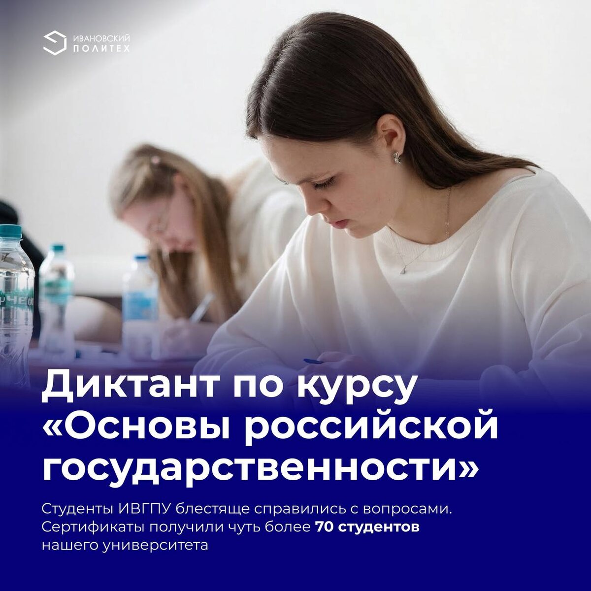Студенты ИВГПУ блестяще справились с вопросами Всероссийского диктанта по основам российской государственности. 💫 По результатам участия в этой масштабной образовательной акции сертификаты получили чуть более 70 студентов нашего университета. ⭐ Итоги впечатляют: средний балл по вузу составил 84,2 из 100. Более половины участников – 40 человек (56,3%) – показали отличный результат (от 86 до 100 баллов), еще 21 студента (31%) уверенно вошли в категорию «хорошо» (71-85 баллов). 💬 Результаты диктанта подтверждают: изучение «Основ российской государственности» становится для наших студентов не просто учебным курсом, а важным этапом личностного и гражданского становления – отметил успехи своих учеников профессор кафедры ОПГХ Дмитрий Смирнов. 👻 ИВГПУ в MAX | 📲 ИВГПУ в ВК 👻 Приемная комиссия ИВГПУ