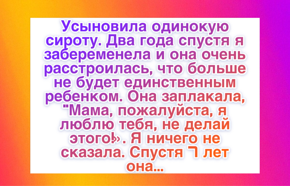 “Я удочерила истощенную четырехлетнюю сироту по имени Анна. Через два года я забеременела, хотя Анна хотела быть единственным ребенком в семье. Она плакала постоянно. Прошло семь лет. Она стала талантливой художницей и создала галерею моих портретов. Ее работы выставлялись на городской выставке. Несмотря на боль, она продолжала рисовать меня. В тот день я осознала жестокость своего поступка. Анна превратила свою боль в искусство и преподала мне урок любви и сострадания, который я пронесу через всю жизнь.”