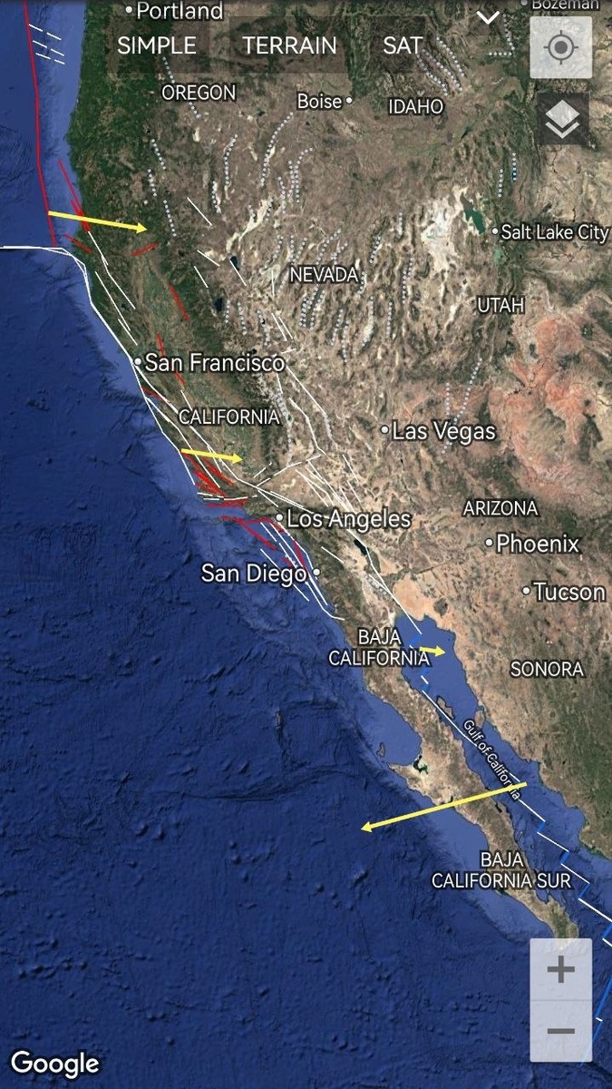 Сохраняются признаки тектонического напряжения уровня М6+ по Калифорнии