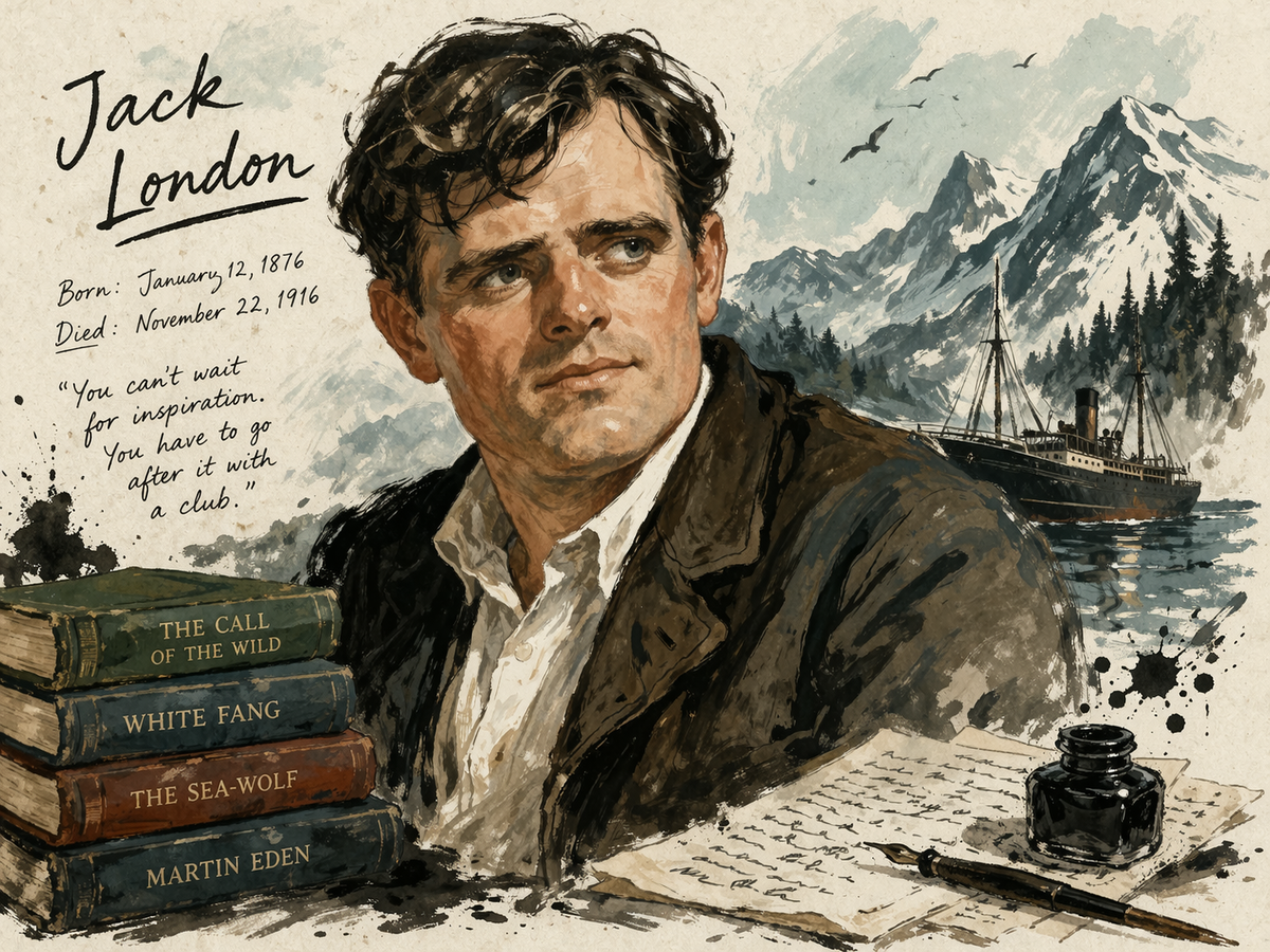 Джека Лондона у нас любят давно, и, кажется, это навсегда. Еще бы - он сам был похож на своих героев: золотоискатель, моряк, бродяга, социалист, объездивший полмира. Родился он 12 января 1876 года в Сан-Франциско. Отец бросил семью, отчим рано умер. В десять лет мальчишка уже разносил газеты, в тринадцать - пошел на консервную фабрику, работал по 18 часов в сутки. Не будем пересказывать тут его биографию, вы и сами наверняка ее знаете. Он мерз в снегах, ходил под парусами, видел нищету и богатство. И умер в сорок лет - возможно, это было самоубийство. За эти сорок лет он успел написать больше пятидесяти книг. Среди них, конечно, есть и проходные, но хороших так много, что можно составить сразу два или три разных списка под названием "Семь лучших романов Джека Лондона". Выбираем просто на свой вкус. И точно знаем, что какие-то вещи не совпадут с вашими ожиданиями. Это нормально, просто напишите в комментариях свою семерку - так даже еще интереснее! И, как всегда, предупреждаем: это не