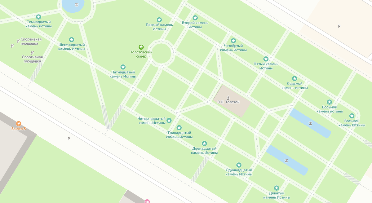 Собираясь в Тулу позапозапрошлым летом, я рассматривал город на «Яндекс Картах», чтобы планировать маршруты от одних интересных мест к другим. Недалеко от Центрального парка культуры и отдыха и художественного музея обнаружился Толстовский сквер с памятником Толстому и девятым камнем Истины. Я увеличил карту, увидел шестнадцатый, второй и десятый камни Истины; увеличил ещё, и тогда раскрылись все семнадцать. Об этих камнях оставил интересные отзывы Андрей А., знаток города 6 уровня. «Нормальный камень», — написал он о первом; «Неплохо, но третий камень получше», — о втором; о третьем так: «Отличный камень, рекомендую». Четвёртый Андрею не очень понравился; он так и отозвался о нём: «Не очень понравился камень». Пятый показался ему получше: «Хороший камень, большой. Здоровенный!»; таковым был и седьмой: «Побольше бы таких в городе!». Шестой, девятый, пятнадцатый, шестнадцатый и семнадцатый камни Андрей не оценил. У восьмого отметил «удобное месторасположение», десятый «так себе камень,