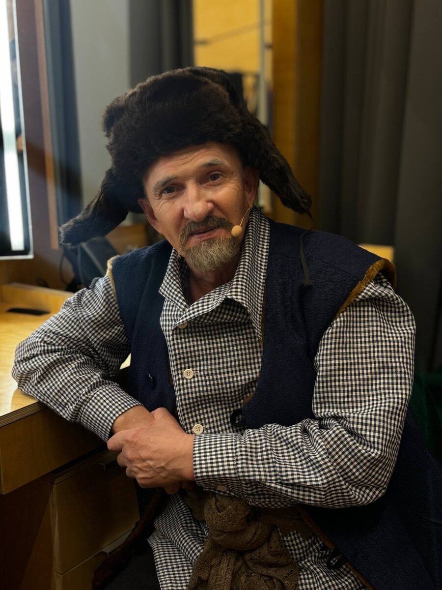 🎭 ✍️Спектакль башланганчы «Әлдермештән Әлмәндәр»дә Искәндәр (Әлмәндәр бабайның улы) ролен башкаручы Татарстанның халык артисты, карендәшебез Олег Фазылҗанов белән әңгәмә корып алдык. — Олег Фарукович, спектакль башланыр алдыннан күңел халәтегез? — Бүген беренче тапкыр спектаклебезне тамашычыга тәкъдим итәбез. Санаулы минутлар калып бара. Аллага тапшырдык. Каушау бар да, юк та кебек. Каядыр очып йөргән кебек хис итәбез үзебезне. Игелекле, матур, халык ярата торган әсәр булып бик күп елларга сузылсын иде әле. Беренче спектакльдәге артистлар кебек безне дә яратып калсыннар иде тамашачыларыбыз, чөнки Шәүкәт абый, Ирек абый, Нәҗибә апа, Равил абый безнең алтын баганаларыбыз. Без дә алардан кимен куймыйча гына, халык күңеленә матур итеп кереп калырлык, яратулы һәм озын гомерле әсәр булсын. ТУЛЫРАК: https://tuganaylar.ru/news/xabarlar/legendar-aldermestan-almandar-spektakle-kamal-teatry-saxnasena-kabat-kaitty