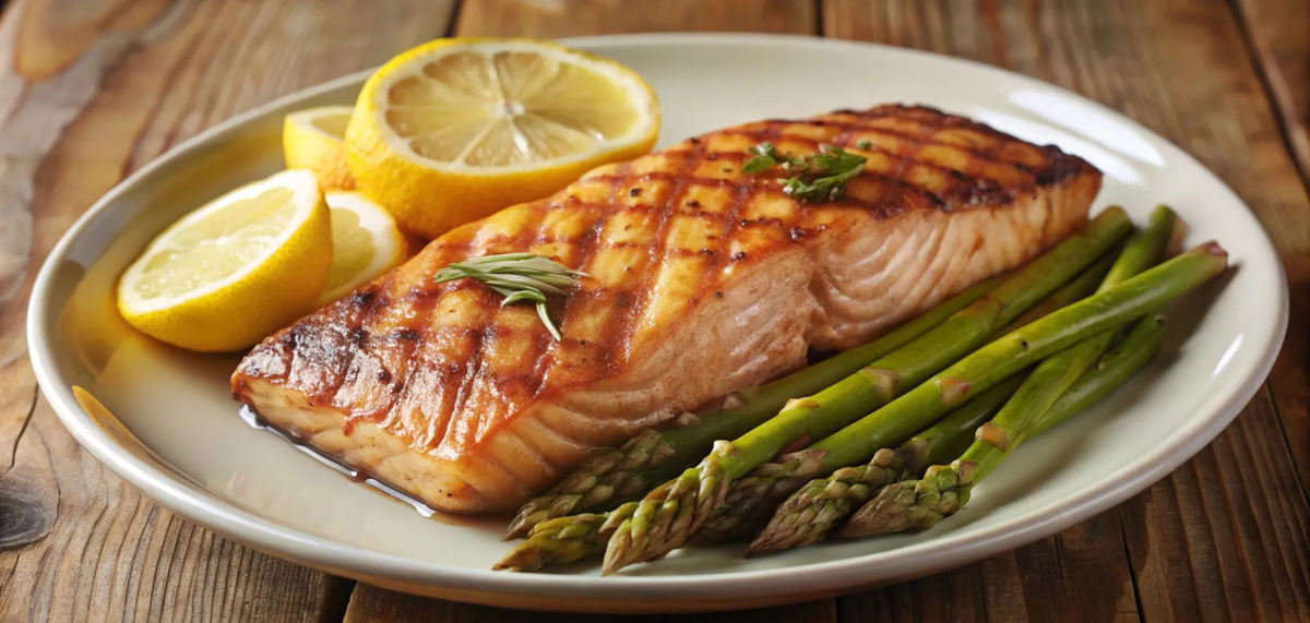 Лосось в медово-горчичной глазури с запечённой спаржей – элегантный ужин 🐟🍯🌿✨