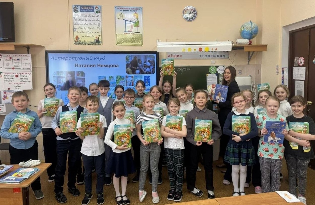 Наталией Немцовой, которую пригласила Лариса Евгеньевна Казакова, библиотекарь 1571. 💡 Как призналась Лариса Евгеньевна, узнала о возможности пригласить писателя в чате библиотек Москвы и попытала удачу. ☝️ Наталия Немцова – член Союза детских и юношеских писателей, сценарист радио и телевидения, автор более 60 книг для детей, а также тысяч сценариев передач и спектаклей. Среди ее работ 🫱 любимые всеми «Приключения Веснушки и Кипятоши», передачи «Ералаш», «Спокойной ночи, малыши», «Азбука путешествий», «Уроки любопытства» и многое другое. 🗣️ «Дети были в восторге от живого общения с настоящим писателем! Они задавали множество интересных вопросов: 📝 Как приходят идеи для новых книг? 📝 Откуда берутся герои и их приключения? 📝 Что больше нравится: писать книги или сценарии для кино? 📝 Как можно понять, что история хорошая и ее можно публиковать? 📝 Какая из ее книг самая любимая?» – рассказала Лариса Евгеньевна Казакова, библиотекарь 1571. ✨ День у школьников получился особенны