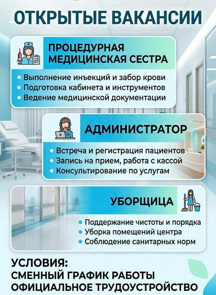 : - администратора - медсестру процедурного кабинета - уборщицу Условия работы и запись на собеседование по телефону клиники или электронной почте. 📧: kdklab@yandex.ru 🔈 Телефон: +7 49672 5-24-45 📍 Адрес: г. Чехов, ул. Вишневая, д.5 #клиникадокторакарвацкой #медицинскийцентр #клиника #чехов #врач #лечение