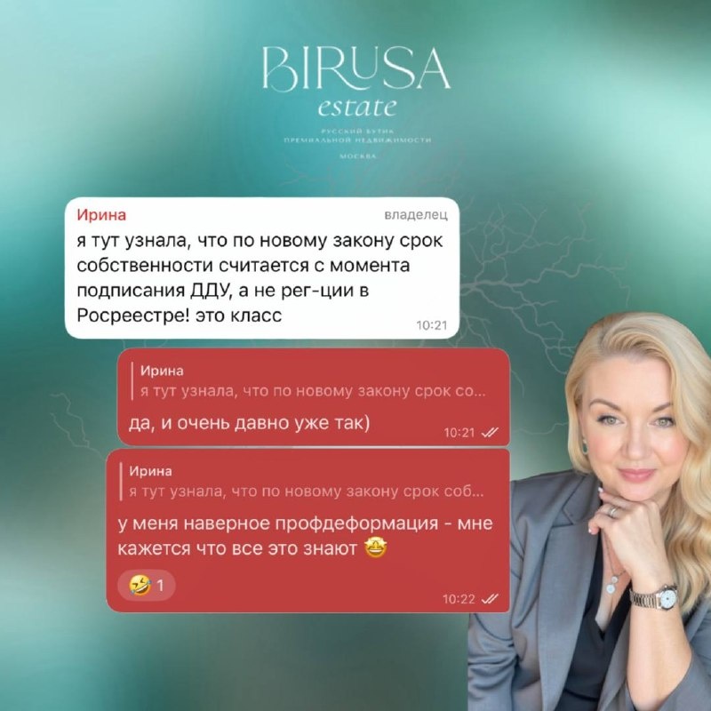 Рассказывает Елена Инюткина #диалогсблондинкой #сумом Ирина: Я тут узнала, что по новому закону срок собственности считается с момента подписания ДДУ, а не регистрации в Росреестре! Это класс! Я: Да, и очень давно уже так) У меня, наверное, профдеформация — мне кажется, что все это знают Вот так вчера случайно в переписке с клиенткой поняла, что многие не знают об этом. Поэтому решила, а вдруг кто-то ещё тоже не знает или забыл… Кто тоже думал, что срок владения квартирой начинается в тот волшебный момент, когда вы получаете ключи и празднуете с друзьями новоселье на полную «катушку»? А на самом деле он начинается гораздо раньше — в тот день, когда вы героически переводите застройщику последнюю сумму и облегченно выдыхаете: «Ну наконец-то, она теперь точно моя!» Срок владения по договору ДДУ отсчитывается с момента полной оплаты стоимости объекта. *Кстати, ипотека - считается полной оплатой, а вот при рассрочке - дата исчисляется с момента внесения финального платежа. Да, именно