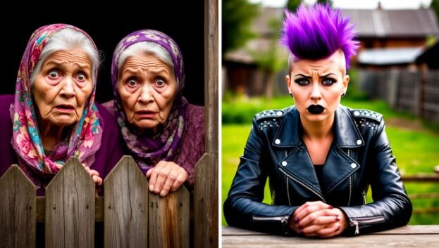 Вера распахнула калитку — и застыла. На пороге стояла девушка в рваных джинсах, в черной футболке с черепом, в грязных кедах. Волосы выкрашены в фиолетовый цвет, уложены в ирокез, в ушах по три серьги, в носу — пирсинг. Губы накрашены черной помадой, глаза подведены так, будто она неделю не спала.