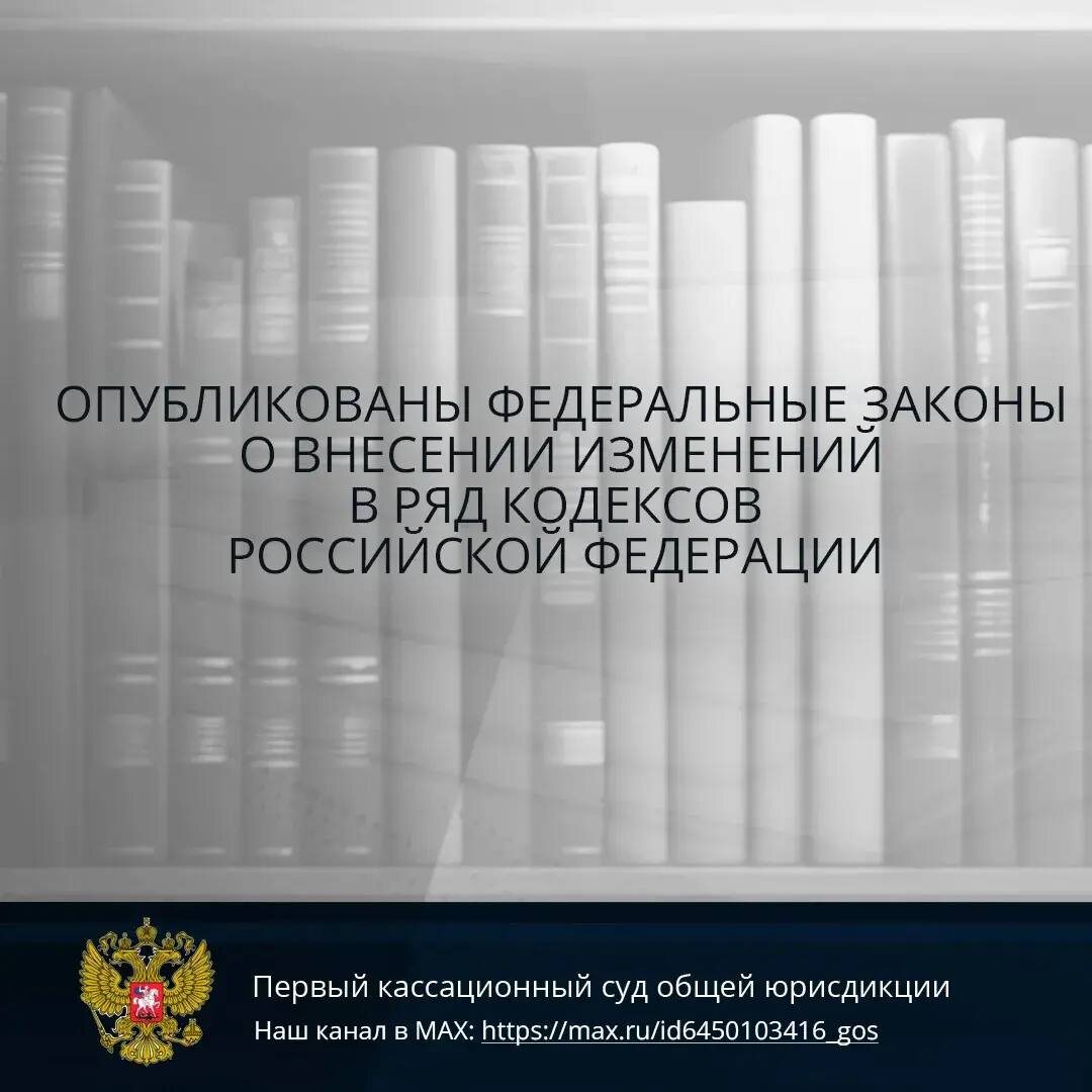 9 апреля 2026 года опубликованы федеральные законы о внесении изменений в ряд кодексов Российской Федерации