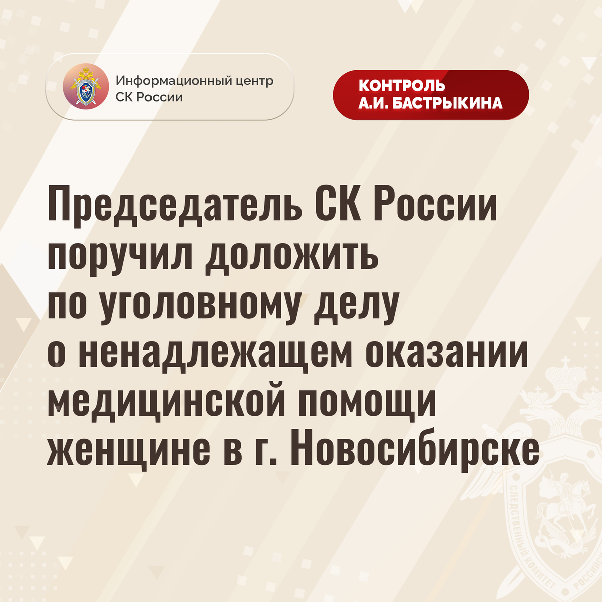 Председатель СК России поручил доложить по уголовному делу о ненадлежащем оказании медицинской помощи женщине в г. Новосибирске