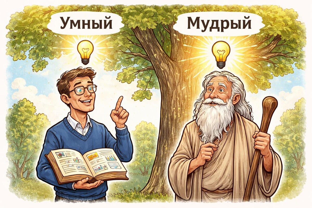 Вы знаете такого человека? Он смотрит умные лекции, цитирует Стивена Хокинга, знает 15 способов завязать шнурки и умудряется поссориться с продавцом в магазине. У него — тонны знаний. Но жизни — ноль. Знакомо? Сегодня разбираем главную подмену в голове: чем ум отличается от мудрости и почему второе важнее первого.