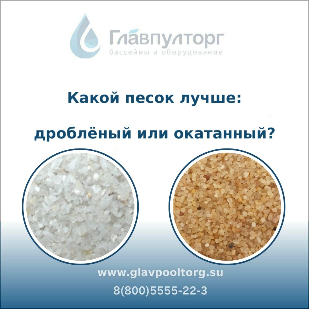 Песочный фильтр — сердце системы очистки бассейна. Именно слой кварцевого песка задерживает мусор, пыль, органику и делает воду прозрачной. Но не весь кварцевый песок одинаковый. Для фильтров используют дроблёный и окатанный. Разница между ними влияет на качество фильтрации. Как работает песочный фильтр Вода проходит через слой песка сверху вниз. Загрязнения задерживаются между песчинками и на их поверхности. Фильтрация происходит в 3 этапа: 🟡Крупный мусор задерживается в верхнем слое 🟡Средние частицы — в середине слоя 🟡Мелкая взвесь — в нижних слоях Чем больше «зацепок» внутри слоя, тем лучше фильтр задерживает грязь. Окатанный кварцевый песок Песчинки гладкие и круглые — как маленькая галька. Такой песок получают естественным способом: он долго шлифуется водой и ветром. Как работает в фильтре👇🏻 Из-за округлой формы между песчинками остаются более широкие каналы, через которые вода проходит легче и быстрее. 📌 Особенности фильтрации: 🔹меньше сопротивление потоку воды �