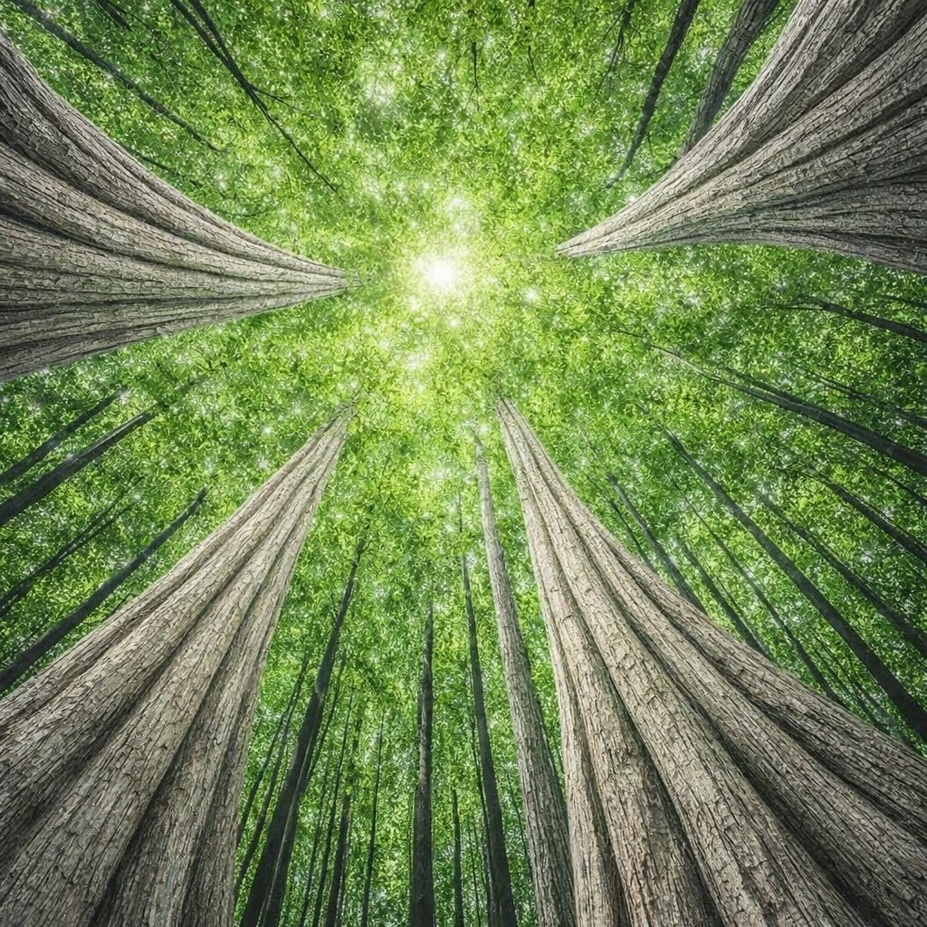 Голубое солнце скрывала плотная, зелёная крона высоких серебристых деревьев. Словно от неба людей отделял второй потолок. От голубоватого оттенка солнечного света - цвета вокруг казались на тон холоднее, но насыщенней.