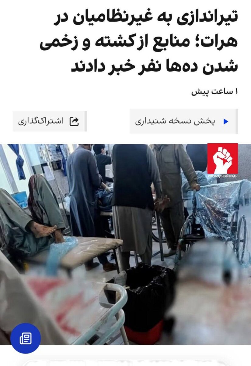 💥 В районе Инджил на западе Афганистана неизвестные открыли огонь по людям у святыни Сейед Мохаммад Ага. По данным местных источников, погибли минимум 12 человек, десятки ранены. Врачи уже подтвердили доставку не менее десяти тел, а очевидцы говорят, что жертв может быть больше. Источник: Afghanistan International. Подпишитесь на канал