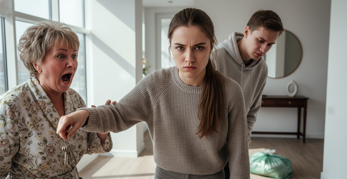 Свекровь начала повышать голос, переходя на пронзительный крик. Она требовала уважения, размахивала руками и обвиняла невестку в расточительности. Ася молча подошла к тумбочке в коридоре. Там лежала запасная связка ключей, которую Кирилл тайком отдал матери. Ася решительно забрала металлическое кольцо. Свекровь попыталась выхватить ключи обратно, продолжая громко возмущаться и диктовать свои правила.