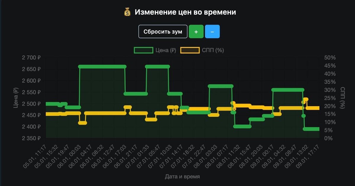! Это индикатор доверия WB🙂 Мы должны научиться чувствовать/контролировать этот индикатор в режиме реального времени, потому что если игнорировать эти сигналы, то ничего хорошего не получится. В данный момент мы разрабатываем различные инструменты для контроля продаж, о которых будем рассказывать в ближайшее время. Большинство инструментов уже протестированы и работают, в том числе и индикатор СПП. Присоединяйтесь и будьте одними из первых, кто получит возможность отслеживать все изменения в режиме реального времени. По всем вопросам пишите в поддержку: @wbscout_chat