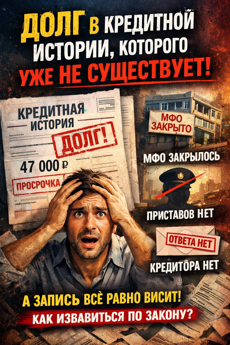 В кредитной истории висит долг, но: — МФО не отвечает — дозвониться невозможно — письма игнорируются — долг не продан — приставов нет Разберём по шагам. 📌 Почему так происходит Бюро кредитных историй (например, АО «БКИ СБ») — это не суд и не банк. Они не проверяют долги, а просто хранят информацию, которую им передали кредиторы. Если МФО “исчезла”: — она не отвечает на запросы — не подтверждает данные — не обновляет информацию Даже если: — прошло 5–7 лет — компания не работает — взыскания нет 👉 запись в БКИ может висеть дальше Именно поэтому её нужно убирать самостоятельно. Срок исковой давности — 3 года. Если: — вы не платили более 3 лет — кредитор не подавал в суд 👉 долг становится невзыскиваемым Это главный аргумент. Нужно убедиться: — нет ли исполнительного производства — не продан ли долг коллекторам — есть ли правопреемник Если никого нет — это усиливает вашу позицию. Не просто “исправьте данные”. А правильно: — требуем внести изменения — указываем, что кредитор не отвечает —