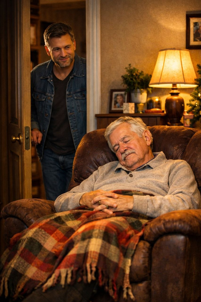 Отец сидел в кресле. Живой. Спал — запрокинув голову, с открытым ртом, с пледом на коленях.