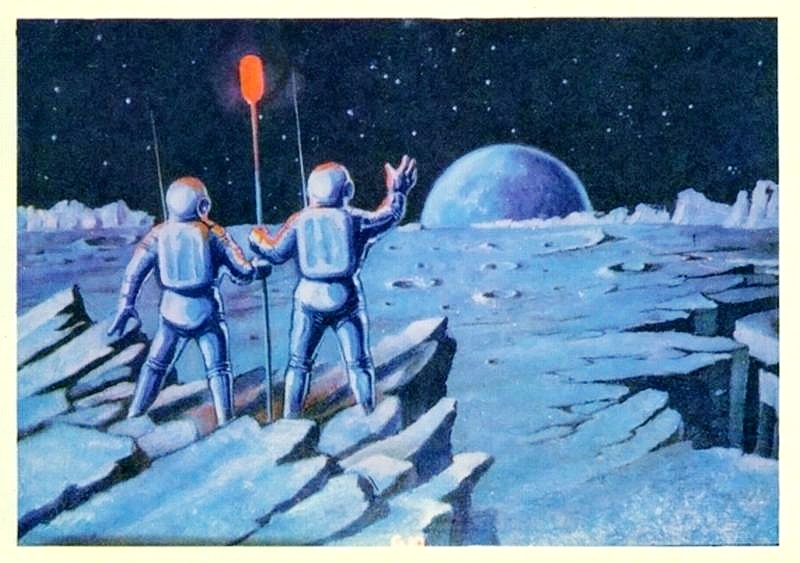 В 1967 году в СССР была напечатана серия почтовых марок, под общим названием "Космическая фантастика". Перед тем, как она поступила в продажу, какой-то ответственный чиновник с умным видом заявил, что в марке "На Луне. Восходит Земля", где за основу был взят рисунок космонавта Алексея Леонова "Лунные геодезисты",