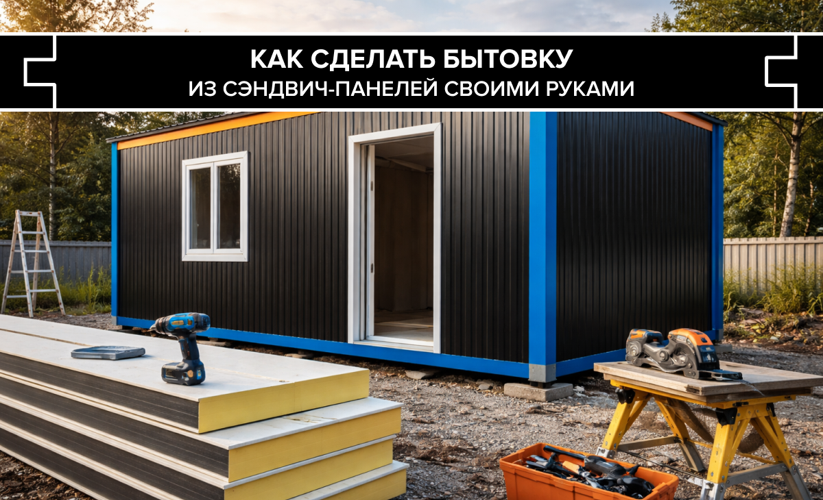 Возводить временные здания из дорогостоящих материалов нерентабельно. Оптимальное решение — построить бытовку из сэндвич панелей. Это трехслойное изделие, в котором наполнитель с двух сторон заключен металлическими листами. Так как материал имеет низкий коэффициент теплопроводности, необходимость обшивать каркас утеплителем отпадает. Лицевая сторона панели покрыта полимерным составом, поэтому не подвергается коррозии и воздействию УФ-лучей. Это обеспечивает долговечность построек. Также материал отличается небольшим весом и простотой монтажа. Из него можно в короткие сроки построить промышленные объекты, дома для постоянного проживания и временные бытовки. Перед тем как собрать бытовку из сэндвич панелей, необходимо определить участок под строительство. Отталкиваться следует от типа сооружения — временное или постоянное. В первом случае, можно поставить конструкцию ближе к выезду с территории. Если бытовка будет использоваться постоянно (например, в качестве хозблока), лучше расположит