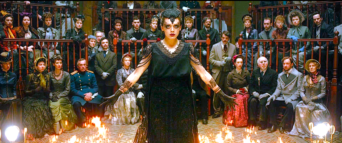 В Петербурге 19-го века одна за другой погибают красивые девушки. Их находят в жутком виде, а на них и внутри них странные знаки. Яйцо с таким знаком и привело полицию к одной иностранке, женщине-медиуме, Оливии. На том яйце была изображена пентаграмма. А значит, обращение к женщине, вызывающей души умерших, оказалось не лишним. Дама, надо заметить, странноватая. Да и как иначе? Общение с духами просто так без последствий не проходит! Следователи Ростов и Ганин решаются сами поприсутствовать на представлении медиума. И это оказывается тем ещё испытанием даже для полицейских с крепкими нервами. В зале собралось множество людей в ожидании встретиться со своими ушедшими близкими. Не удивлюсь, если здесь же когда-то принимали в масоны. Что-то есть между этим близкое. Вы не находите? Оливия сначала вызвала вокруг себя огонь, а потом на потолке и образы умерших явились! Вот такая страшная жуть или жуткая муть. Образы сменяли один другого. Каждый увидел своего родственника, жену или ребёнк