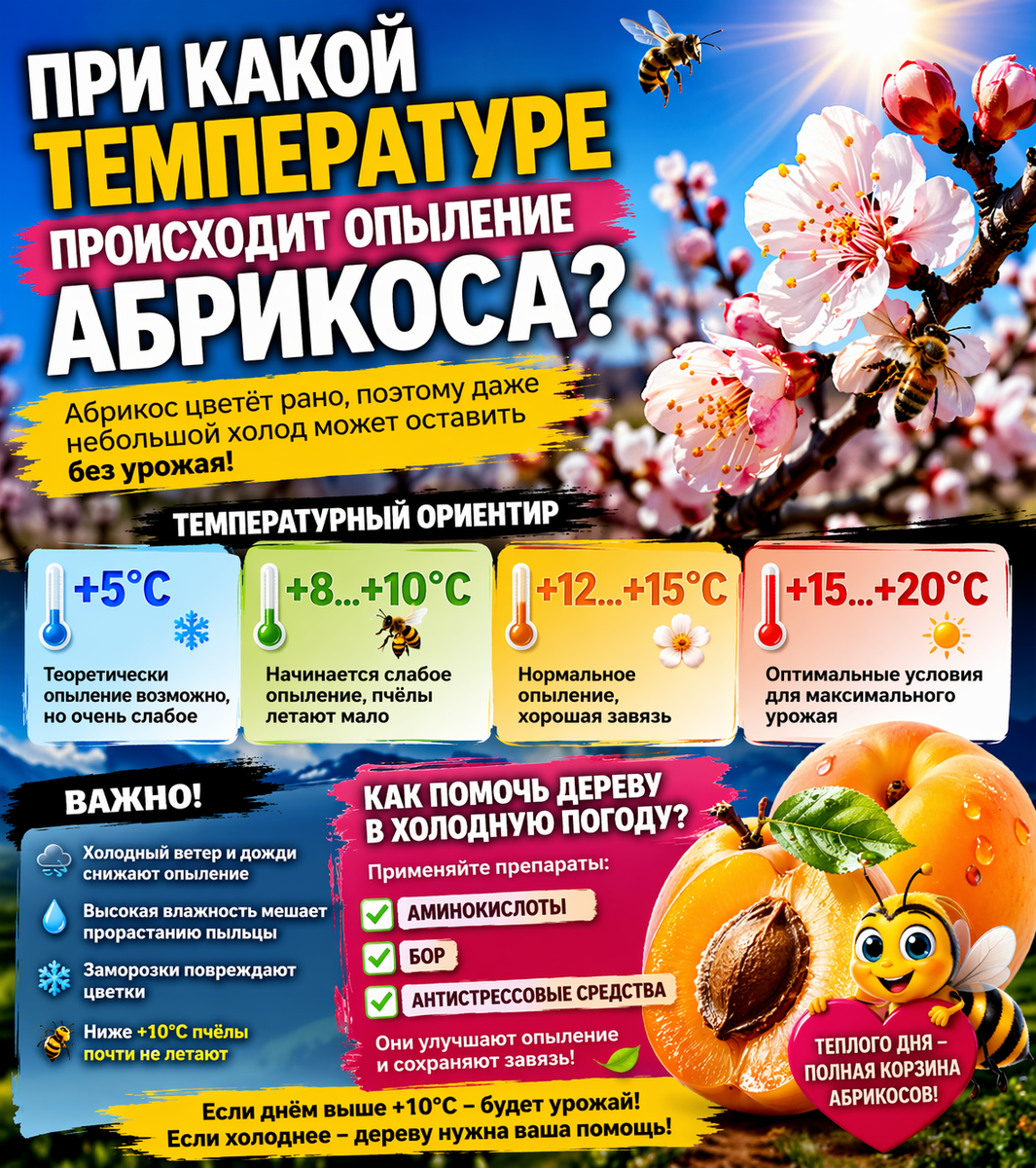 🌸 При какой МИНИМАЛЬНОЙ ТЕМПЕРАТУРЕ происходит ОПЫЛЕНИЕ АБРИКОСА?