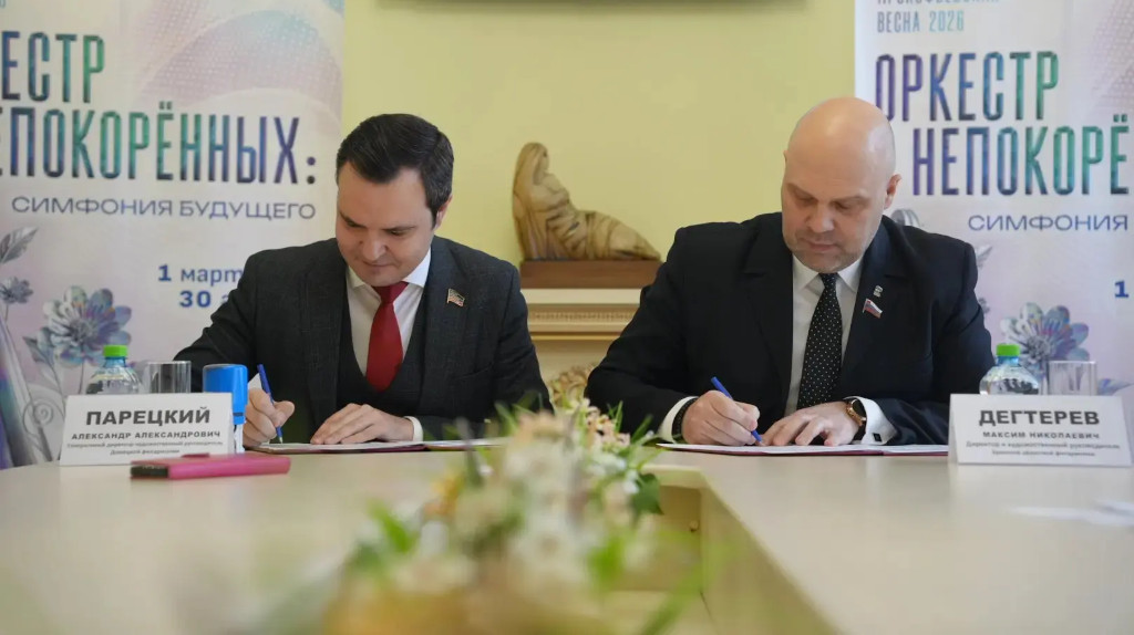 Брянская областная и Донецкая государственная академическая филармонии заключили соглашение о сотрудничестве. Церемония состоялась в Донецке перед концертом «Брянский оркестр и Оркестр Непокоренных». Документ предполагает дальнейшее творческое взаимодействие между музыкантами Донецка и Брянска и реализацию мероприятий по сохранению культурных традиций. Подписи под соглашением поставили руководители организаций из Брянска Максим Дегтерев и Донецка Александр Парецкий. «В такой непростой ситуации мы продолжаем работать, причем не просто работать, а развиваться, создавать хорошее большое искусство», - подчеркнул директор и художественный руководитель Брянской областной филармонии Максим Дегтерев. Его донецкий коллега в свою очередь отметил, что благодатной основой для подписания договоров о сотрудничестве с коллегами в разных регионах Российской Федерации, в том числе в Брянской области, стали проекты, которые донецкие деятели искусств реализуют при поддержке Президентского фонда культурны