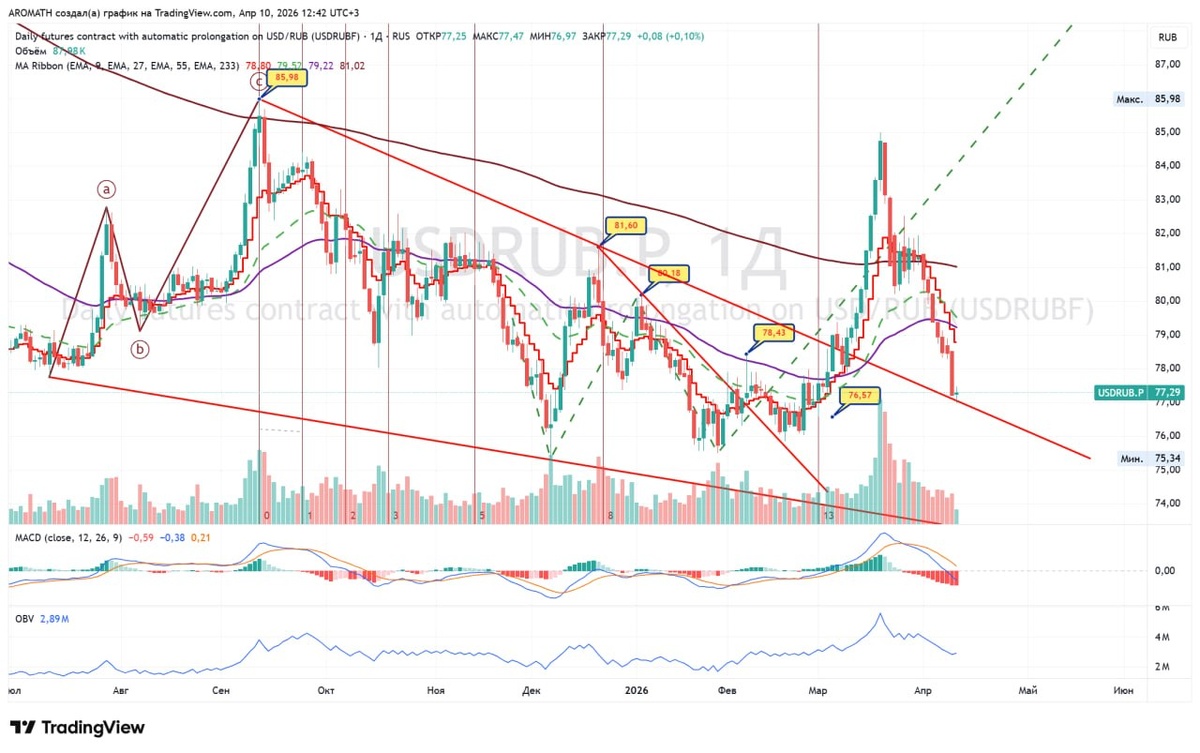 💲Доллар-рубль #USDRUBF вернули туда, откуда начинали - лежим четко на наклонной