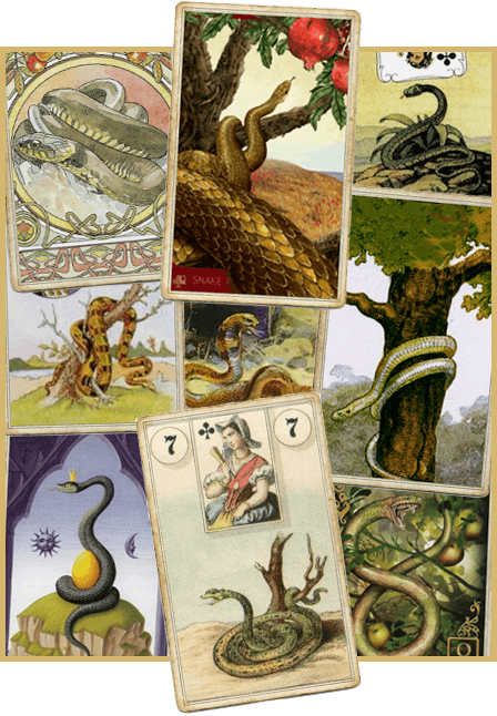 Карта «Змея» в оракуле Ленорман вызывает неоднозначные ассоциации. Она может олицетворять как мудрость и рассудительность, так и коварство, обман или искушение.