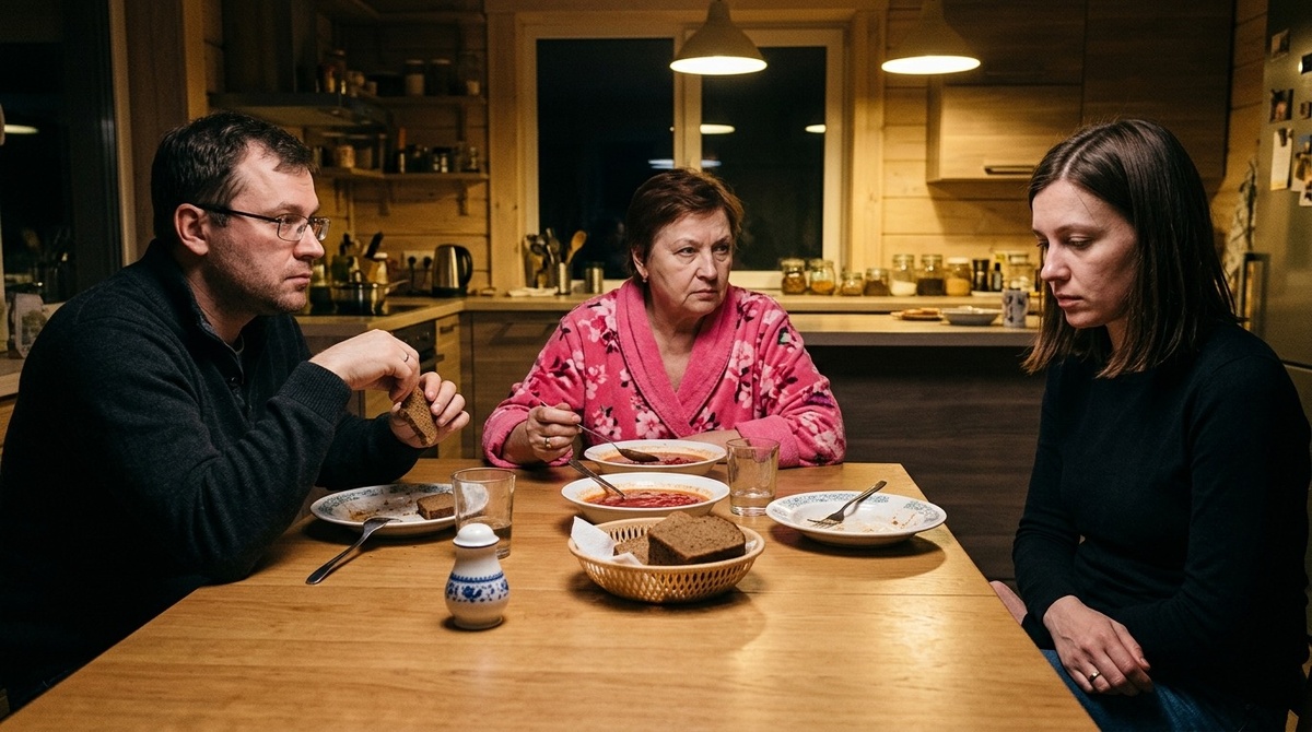 Они сели. Борщ действительно был густым, наваристым. Пахло лавровым листом и чесноком. Тамара Петровна ела с аппетитом, громко прихлёбывая.