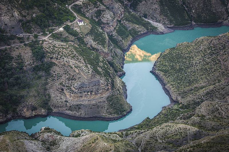 Про Сулакский каньон слышали, наверное, все, кто хоть раз интересовался Дагестаном. Бирюзовая вода Сулака, зажатого среди гор, — визитная карточка региона. Предлагаем взглянуть на каньон с другой стороны — с высочайшей точки Гимринского хребта. На картах это место обозначено как Большой Сулакский каньон.