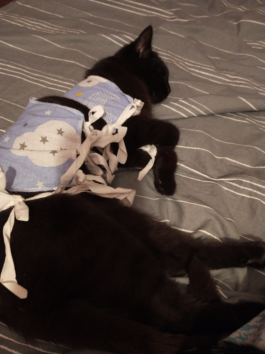 Асины новости не слишком вас порадуют, друзья. Не писала вчера, чтобы не огорчать никого из переживающих за нашу кошечку, которая восстанавливается после стерилизации. "Мы ждали третий день". Что скажет доктор? Узнаю, вот тогда и напишу, думала я. По порядку. В среду после обеда Ася растеряла всю свою живость , стала вялой. Никаких игр, и ужинать не стала вовсе. Я решила, что перекормила малышку сырой курицей - это был общий второй завтрак, и коты оторвались. И Аська с ними тоже. Правда, никаких признаков - рвоты, диареи - не наблюдалось. Ночь прошла спокойно. В четверг кошка только лежала. Утром посетила туалет, а потом лежала тряпочкой. Не жаловалась, не просила ничего. Что ж, думаю, пусть отоспится. Пыталась смачивать рот водой - нет, не понравилась эта моя идея Асе. Переходила на разные места, везде укладывалась бубликом и спала, спала, укрытая тёплыми платками. К вечеру глазки запали, стали тёмными щёлочками. Лапки лежали в беспорядке- складывай сама как хочешь, хоть в косички