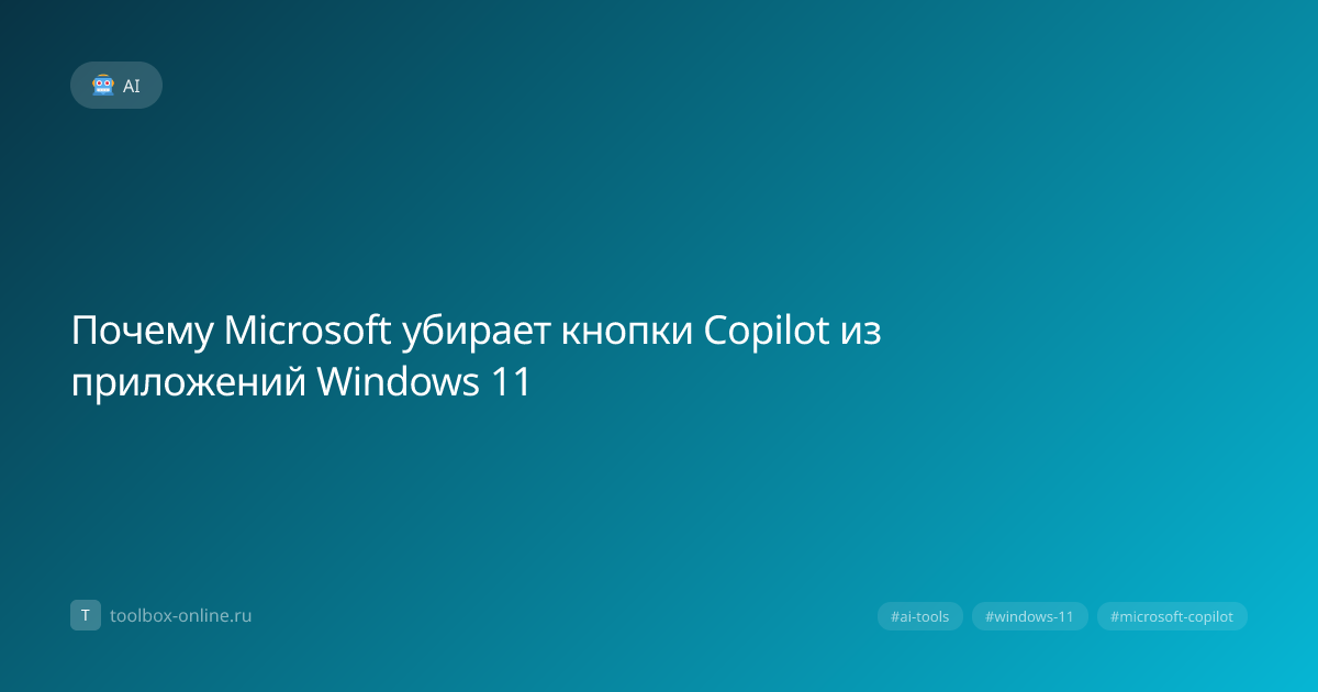 Microsoft начала удалять кнопки Copilot из приложений Windows 11 уже в августе 2024 года, объяснив это желанием упростить пользовательский интерфейс и уменьшить нагрузку на систему. По данным компании, более 35 % пользователей жаловались на замедление работы ПК из‑за постоянных запросов к Copilot. К концу 2026 года планируется полностью заменить старые кнопки новыми контекстными подсказками. Причина заключается в том, что Microsoft стремится оптимизировать ресурсы и улучшить опыт работы с AI‑инструментами. По результатам опросов, проведённых в 2025‑2026 годах, 42 % пользователей отмечали, что кнопки мешают привычному workflow. Удаление кнопок позволяет системе отключать фоновые запросы к облачным сервисам, что снижает нагрузку на процессор и сеть. По данным Microsoft, после удаления средняя нагрузка на CPU в режиме простоя упала с 12 % до 7 %. Если вы хотите продолжать использовать возможности Copilot, вам необходимо включить их через настройки Windows 11. Это делается в несколько шаго