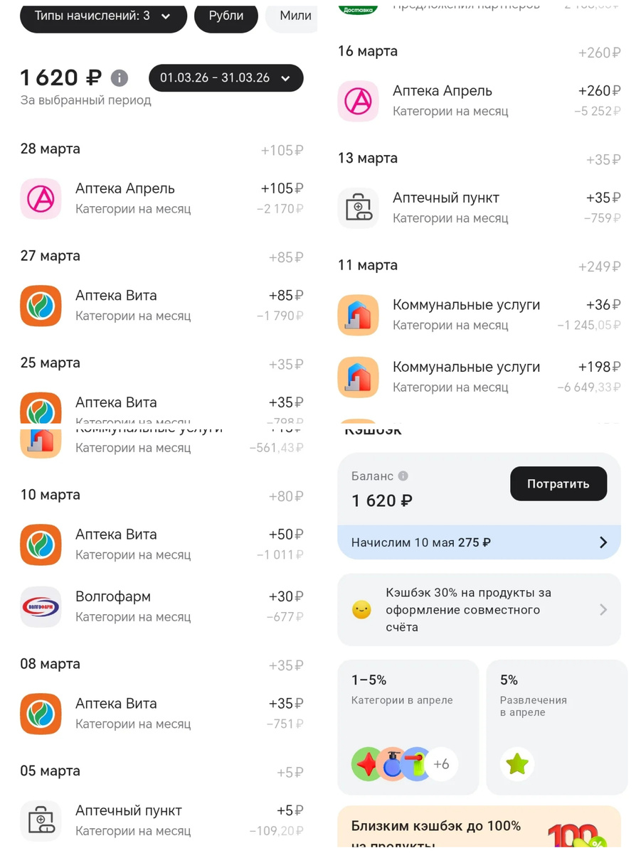 Кэшбек придет в течение 10 дней, а вывести его можно будет 10 мая.