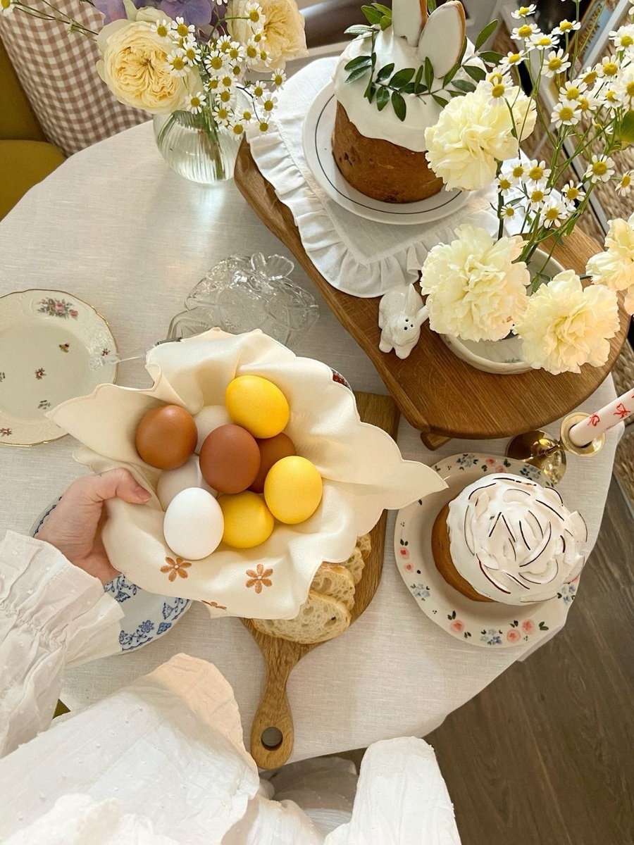 Чтобы в светлый праздник Пасхи создать особое настроение, украшаем дом натуральными тканями с милыми рисунками. Льняная скатерть, салфетки из шелковистого хлопка... Перевяжите их кружевной тесьмой — в этом столько очарования. Добавьте живые цветы, и пространство наполнится тем самым ощущением домашнего тепла, за которое мы так любим этот праздник.