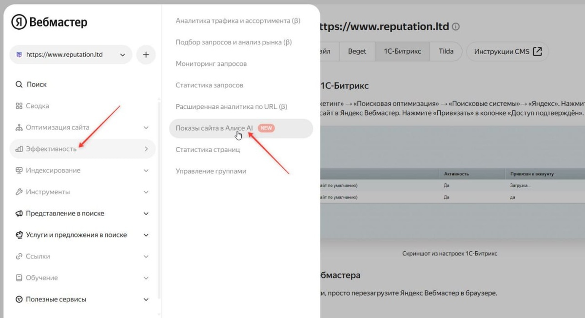 Теперь можно посмотреть как часто ваш сайт попадает в быстрые ИИ-ответы Алисы
