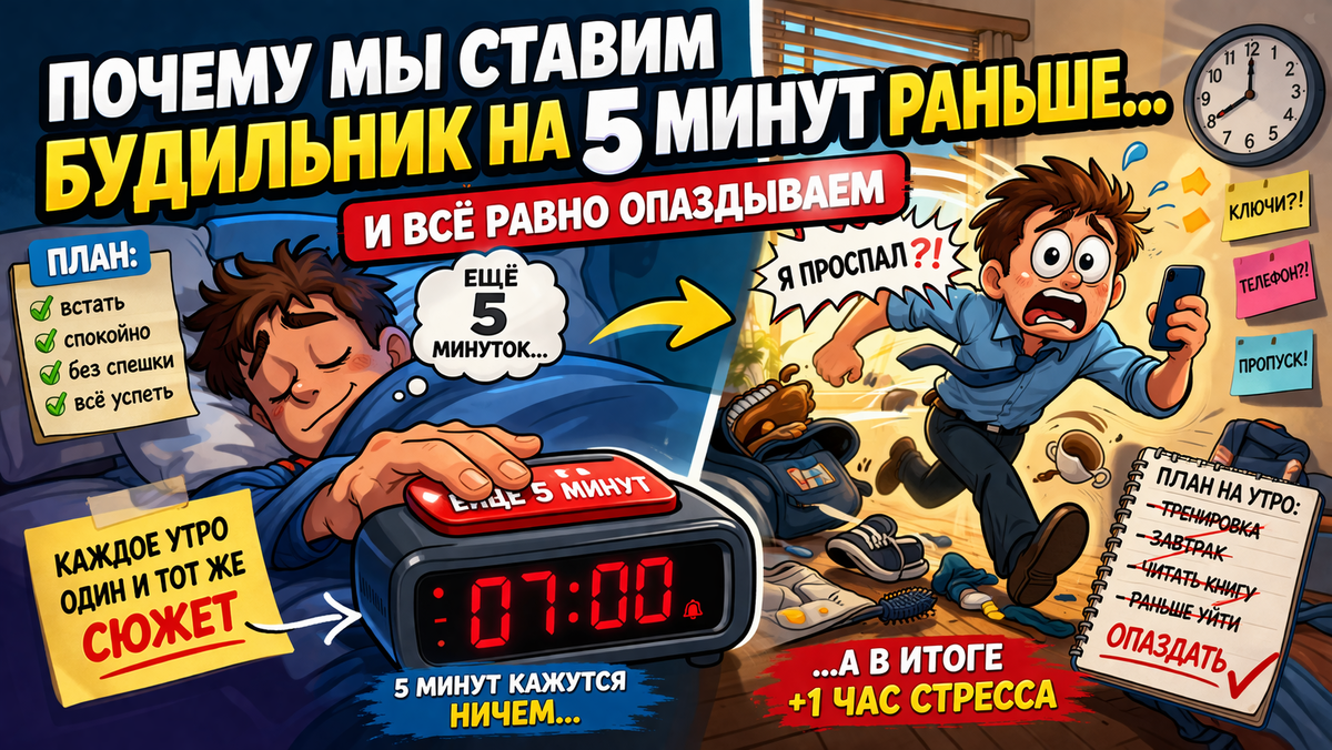 Есть особый уровень самообмана — это будильник «на 5 минут раньше». Ты ставишь его с мыслью: